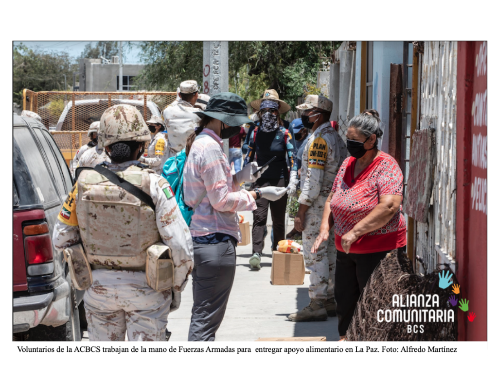 La Alianza Comunitaria de Baja California Sur (ACBCS) continúa trabajando para llevar ayuda alimentaria a las familias necesitadas de Baja California Sur. El compromiso de la Alianza es apoyar a 40mil familias durante los meses que dure la crisis ocasionada por la presencia del COVID-19 en nuestro estado. Esto es posible gracias a la incansable labor de todos los voluntarios y el personal de la mesa de seguridad de las Fuerzas Armadas que son quienes llevan las despensas hasta todas las zonas necesitadas de Baja California Sur.