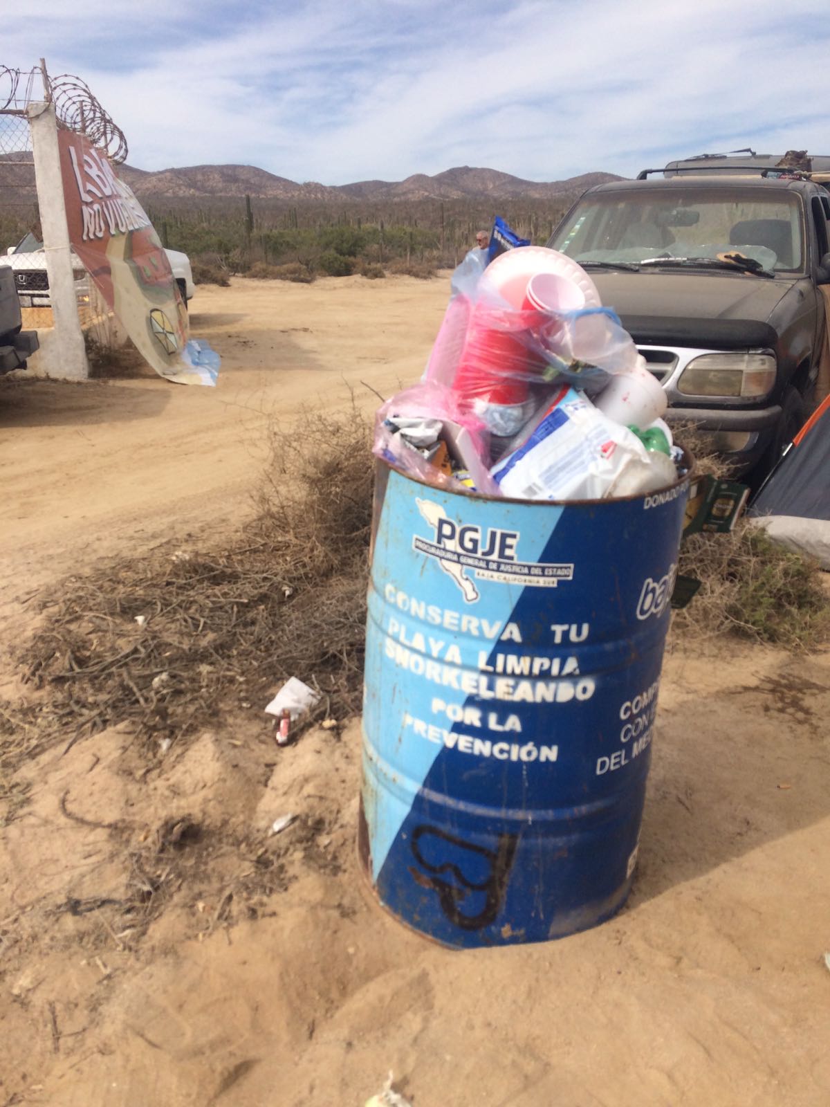 Es la campaña que llevó a cabo Ponguinguiola, Cómo Vamos La Paz Observatorio Ciudadano, Reciclavitrum, Rescatando Nuestros Arrecifes y Manglares y Playerito, cada equipo con voluntarios para la jornada de recolección de basura, con una duración de 6 hrs. Cadenas Oxxo colaboró con una mampara para sombra, agua para toda la jornada y bolsas de plástico grandes para basura, sin logotipo.