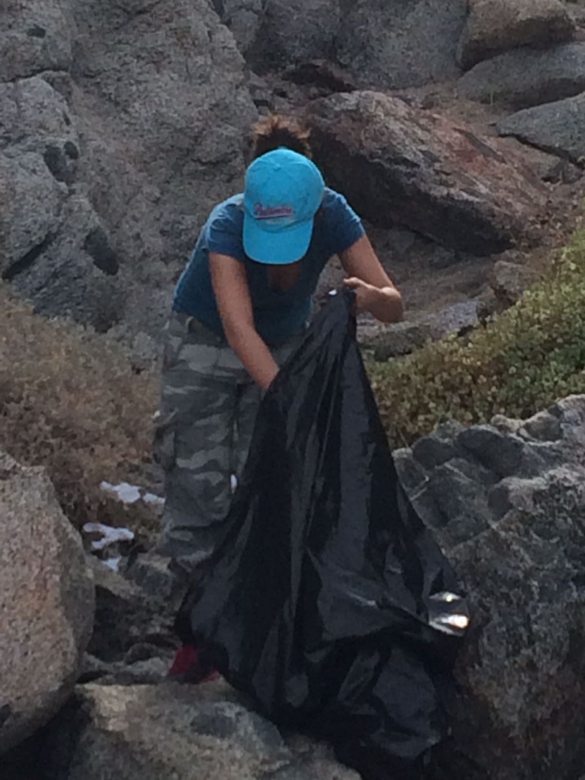 La segunda etapa de la dinámica fue visitar uno a uno los campamentos para pedirle a la gente que regrese su basura a casa, a su vez se les entregó bolsas para la recolección.